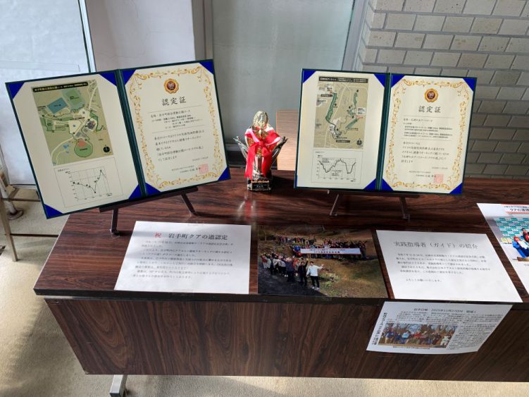 会場には、「太陽生命クアオルト健康ウオーキングアワード2024」優秀賞の受賞トロフィーと、正式に認定されたクアの道認定証が展示され、岩手町がクアオルトの仲間入りを果たしたことが実感できる内容となっています。